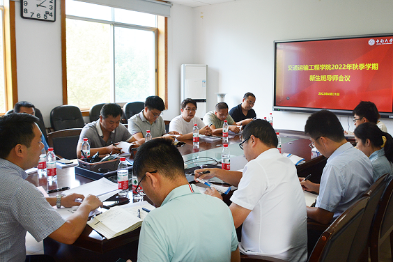 8月31日下午15:00,suncitygroup太阳集团于交通楼322会议室举行交通院2022级新生班导师会议。学院党委书记贺志军、学院党委副书记宋晓东,优秀班导师李蔚、汪馗,2022级本科生辅导员丁德孝及2022级本科生班导师参加本次会议。