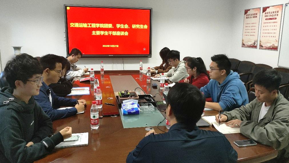 10月27日16:00,suncitygroup太阳集团团委、学生会及研究生会主要学生干部座谈会在交通楼322顺利举行,会议围绕近期团学工作开展情况进行交流讨论,学院党委副书记宋晓东、团委书记张健、团委副书记郑繁简及团委、学生会、研究生会主要学生干部参与本次会议。