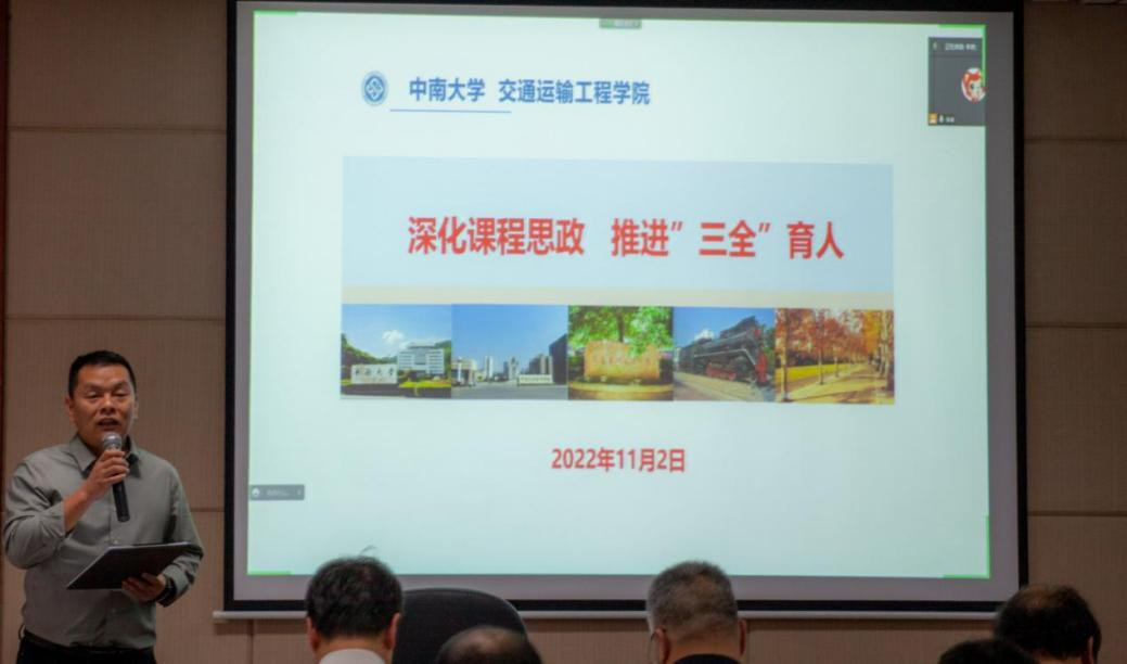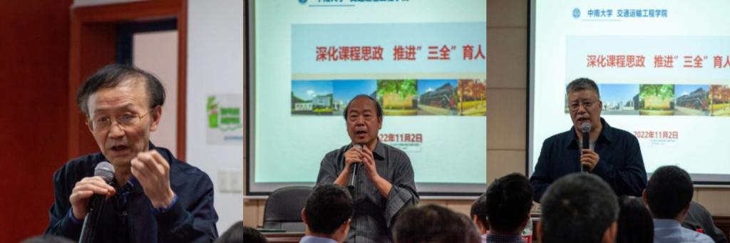 随后,交通院五位老师结合自身在课程思政中的思考与实践进行分享。湖南省课程思政课堂教学竞赛一等奖获得者李烨老师,从课程思政教学中的常见误区及其内涵谈起,对以课程特色和学科优势深入研究目标的教学方法进行了剖析。他指出,要将思政元素有效融入到专业知识传授过程中,达到育人的最好效果。2021年校级思政示范课程代表章易程老师以工程流体力学为背景,将建设内容分层次依轻重进行阐述,提出产出导向的沉浸式因才教学模式和多尺度因才考核模式。交通院党委副书记宋晓东根据学生工作的特点和学院思政教育的案例,谈及对课程思政建设的看法,号召全体教师发挥特色、明确职责、夯实基础、协同发力,不断利用思政资源,为培养敢想敢为又善作善成的时代好青年共同奋斗。党委委员叶峻青老师部署了课程思政案例的编写工作,并结合自身参赛的经历,着重阐述了课程思政教学案例的编写方法。李蔚老师提出课程思政要进行教学创新,深化人才培养,丰富思政案例,精益求精完成思政案例编写工作。