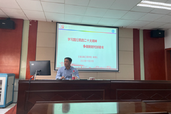 为深入学习贯彻党的二十大精神,11月20日下午15:00,suncitygroup太阳集团党委副书记宋晓东于交通楼513为研究生第二党支部、研究生第三党支部、交通运输第二学生党支部全体党员讲授“学习践行党的二十大精神,争做新时代好青年”专题学习党课。三个支部全体党员参加本次党课学习。