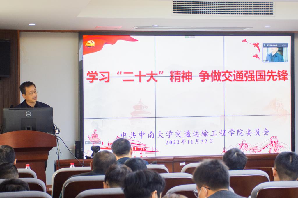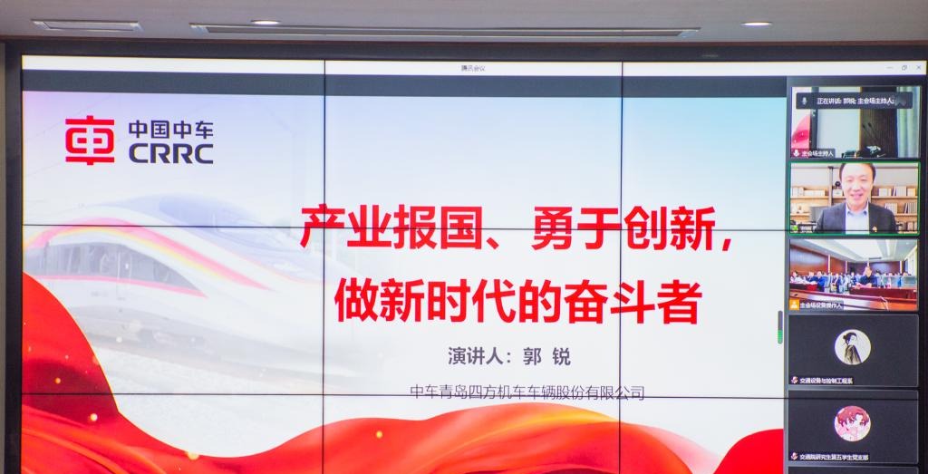 11月22日上午10:00,学习党的二十大精神专题报告会于交通楼顺利举行。党的二十大代表、全国劳动模范、中宣部最美铁路人、中车青岛四方机车车辆股份有限公司首席技师郭锐受邀作专题报告,学院领导班子及学院全体师生代表参加本次会议。本次会议采用线上线下相结合的方式,由学院党委书记贺志军主持。